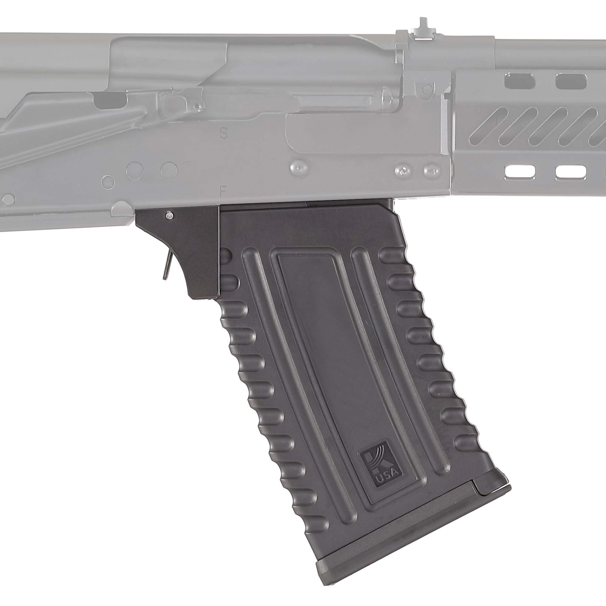 Kalashnikov USA is proud to introduce our 12 Gauge magazine ramp. It is commonly know that Saiga style 12 gauge shotguns along with the KS-12 series of shotguns based on their original designs do not allow the shooter to load a magazine on a closed bolt. This magazine assist along with our current style 12 Gauge magazines with updated follower will allow for faster reloads and easier manual of arms and will allow you to load on a closed bolt. The magazine ramp will still allow you to use older style Saiga 12 gauge magazines and Kalashnikov USA KS-12 magazines. The real benefit of this magazine ramp is when using our newer style 12 gauge magazines with our “neon green follower”. Made of 7075 Aluminum.