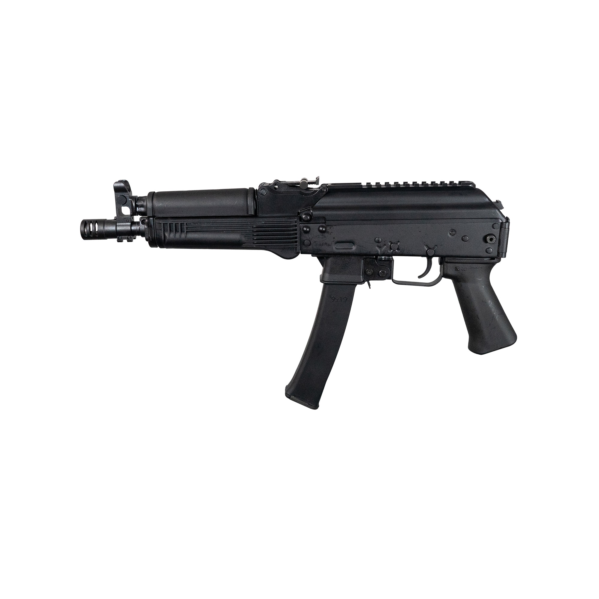 Dependable and robust, the KP-9 Pistol from Kalashnikov USA™ is a civilian legal, semi-automatic, authentic version of the Russian Vityaz submachine gun, 100% US-made. The KP-9 is an easy-to-operate AK-style pistol that works on a blowback operating system. It is chambered in 9×19mm with a barrel length of 9.25″ and accepts 30 and 10 round Kalashnikov USA™ magazines. It has a hinged top cover with a Picatinny rail and specially designed feed ramps to accommodate jacketed hollow point bullets.