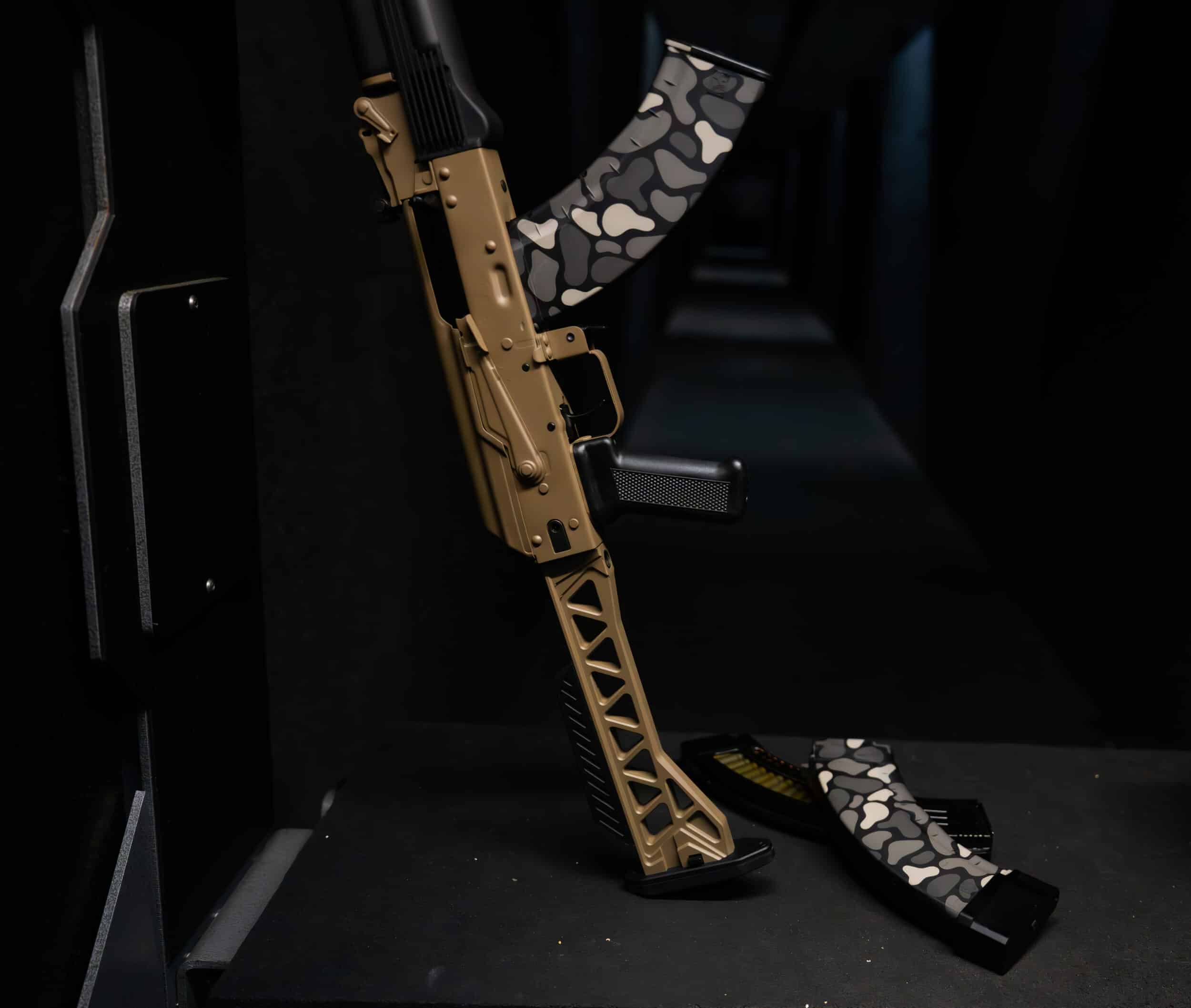 This limited run KR-103 SFS features a Flat Dark Earth Cerakote finish and comes installed with a KUSA Premium Metal Side Folding Stock. A Frog Skin 7.62x39MM 30 Round Magazine is also included. Please allow up to 22 business days after sending your FFL information to receive your order as these are custom built.