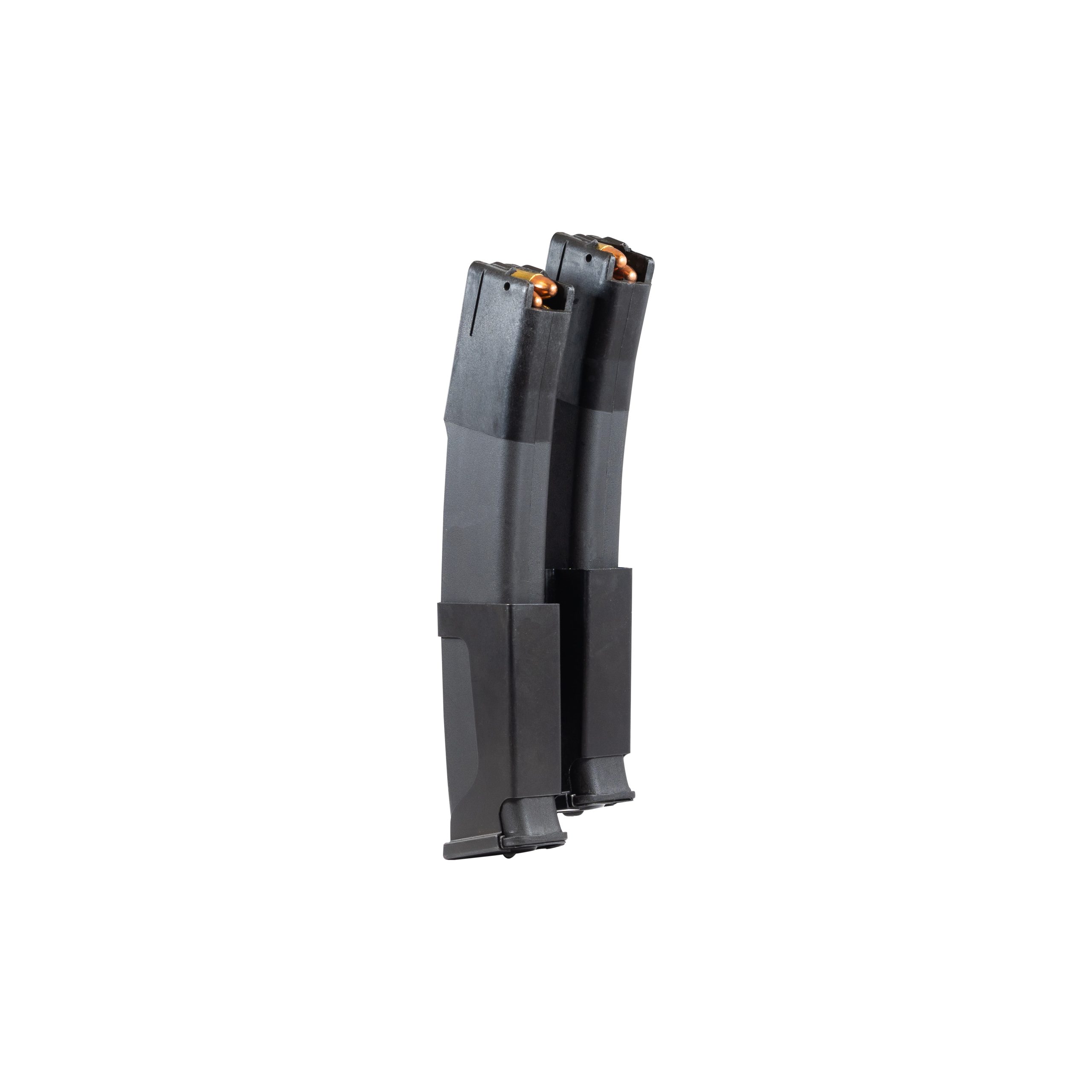 A durable metal magazine coupler for the Kalashnikov USA 9mm KR-9 / KP-9 30 Round Magazines. Staggered magazine coupler for easy change between reloading. This magazines coupler also fits original Russian Vityaz magazines.