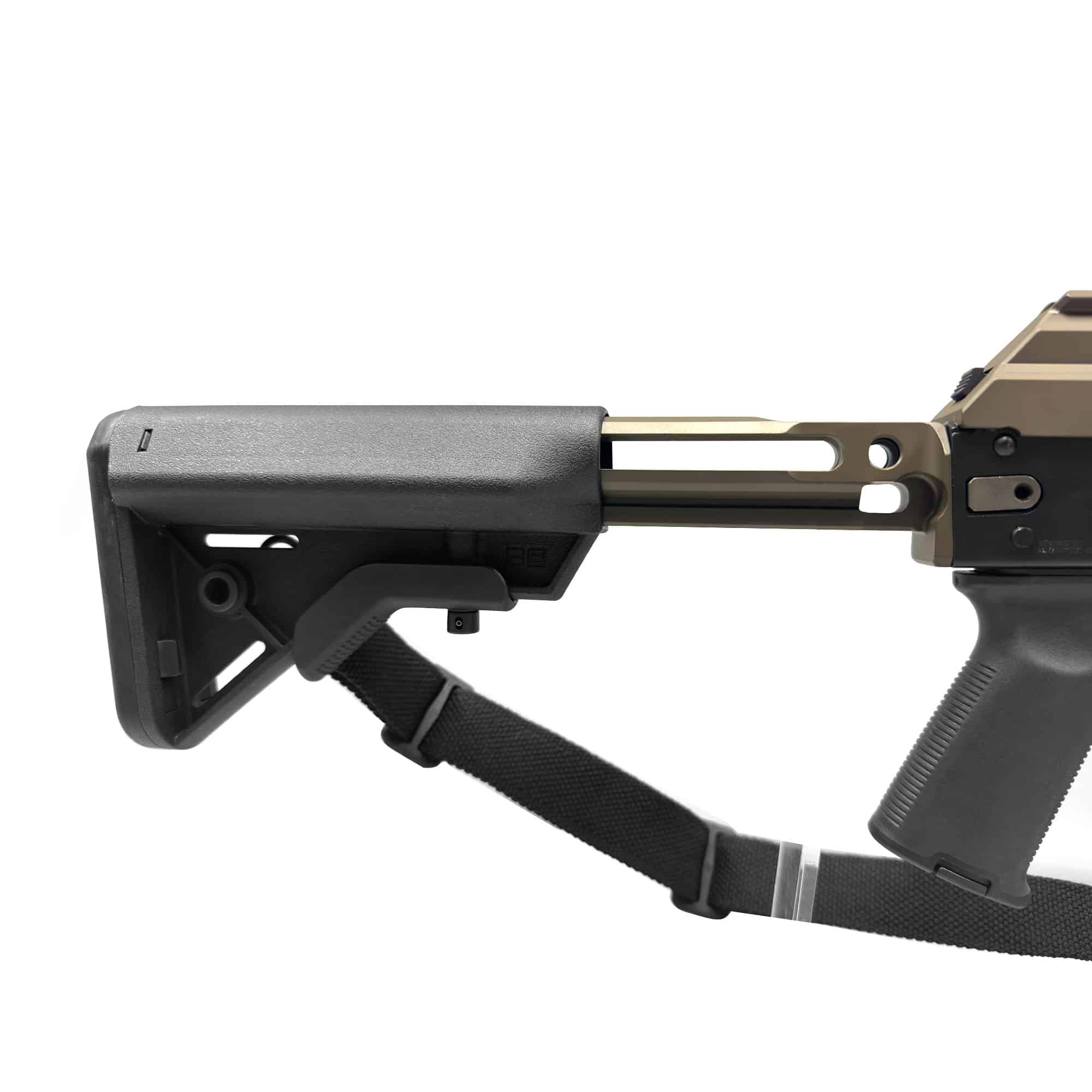 The Sureshot USA M4 Buttstock Adapter (matching color) allows the attachment of your favorite M4 type stock or brace to your side-folding AKM (stamped)!