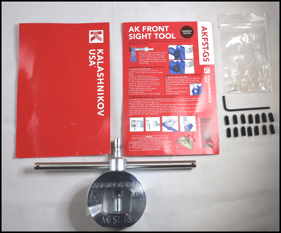 - DescriptionThe UNBREAKABLE AKFST-GS is 900% stronger than the current generic “C-clamp” type tools. Now with the AKFST-GS you’ll never have to re-buy a front sight tool due to breakage on a frozen AK sight. The AKFST-GS also makes range adjustments even easier, don’t let a frozen AK front sight force you to run back to your shop to make adjustments.The all new Kalashnikov USA AKFST-GS for 2014 has many new features for gunsmiths to adjust any AK-type rifle’s front sight.